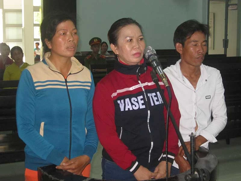 Ba bị cáo Đào, Loan, Trung trước vành móng ngựa. Ảnh: H.VĂN