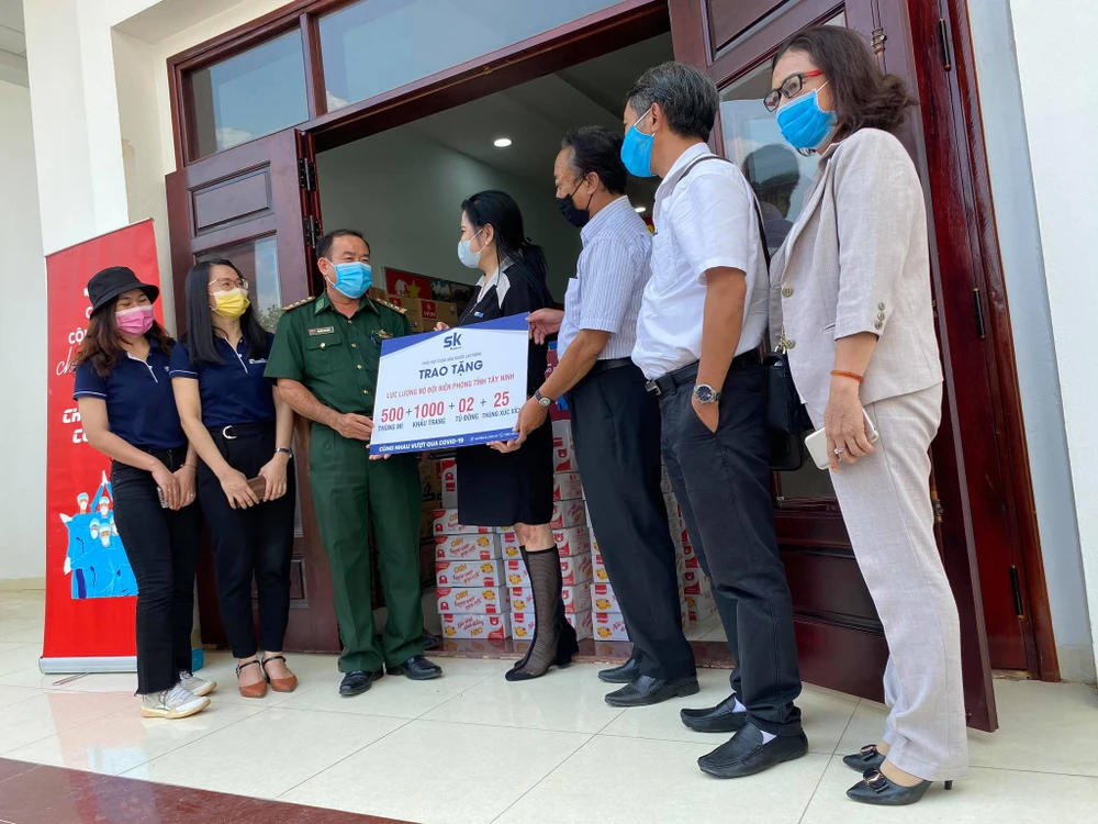 Chiều cùng ngày, Công ty SK tiếp tục trao tặng lực lượng Bộ đội biên phòng tỉnh Tây Ninh 500 thùng mì, 25 thùng xúc xích, 1.000 khẩu trang y tế và hai tủ đông.