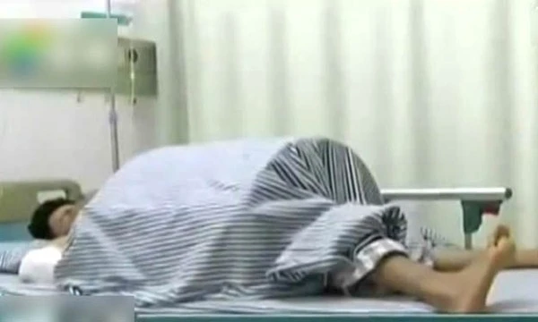 Cậu thanh niên nằm điều trị trong bệnh viện.