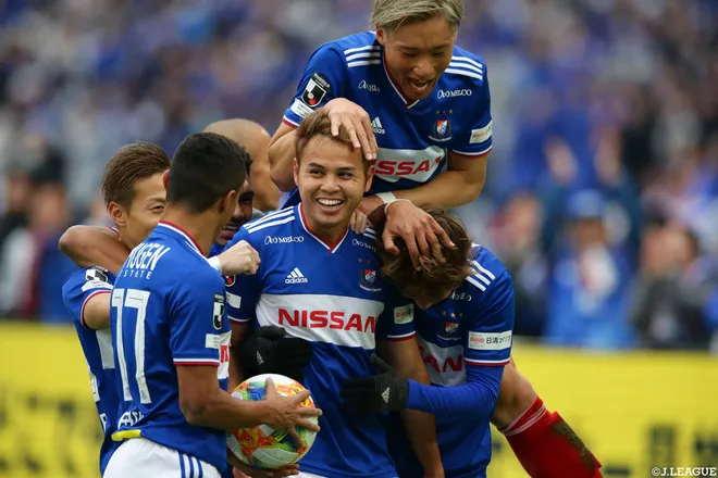 Hậu vệ Theerathon Bunmathan (giữa) góp ba bàn và bốn đường chuyền thành bàn giúp Yokohama F Marinos vô địch J-League 2019.