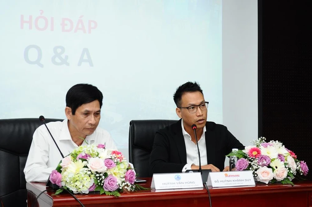 Ông Huỳnh Văn Hùng (Giám đốc Sở VH-TT TP Đà Nẵng) và đại diện ban tổ chức thông tin về cuộc thi IRONMAN 70.3 Châu Á - Thái Bình Dương năm 2019. Ảnh: BTC