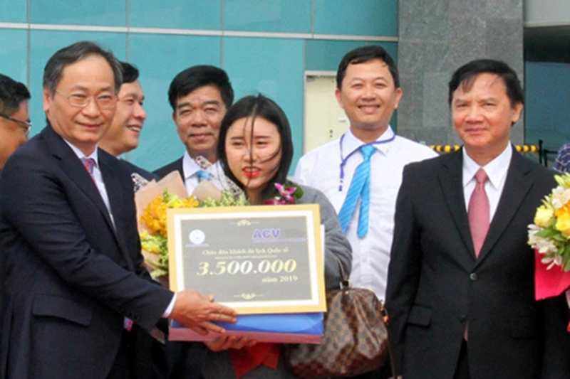 Lãnh đạo tỉnh Khánh Hòa đón vị khách quốc tế thứ 3,5 triệu và hành khách thứ 10 triệu.