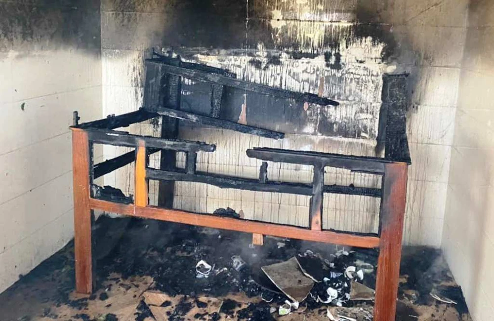 Bàn thờ và đồ dùng trong phòng của căn nhà dân ở xã Nghĩa Hiếu bị cháy hỏng.
