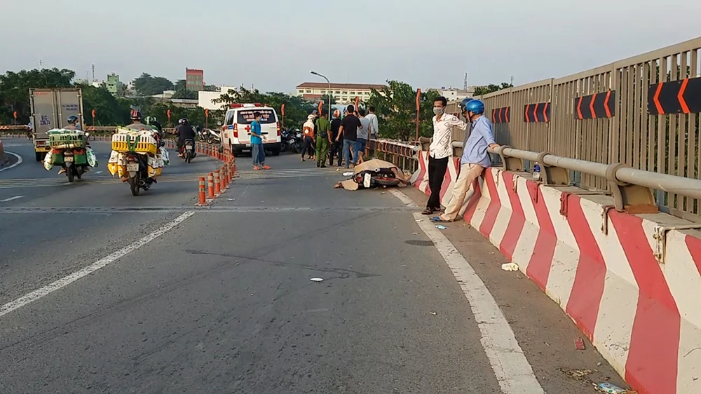Thông tin ban đầu, khoảng 14 giờ chiều, nam thanh niên chạy xe máy tự té ở đoạn đường cong ở dốc cầu vượt nút giao Tân Tạo (phường Bình Trị Đông A, quận Bình Tân) nên báo công an.
