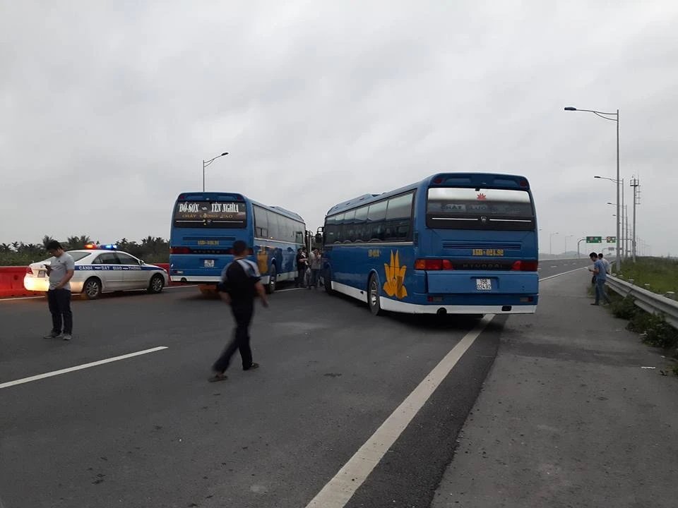Hai xe khách quay ngang ra đường. Ảnh đăng trên otofun.net