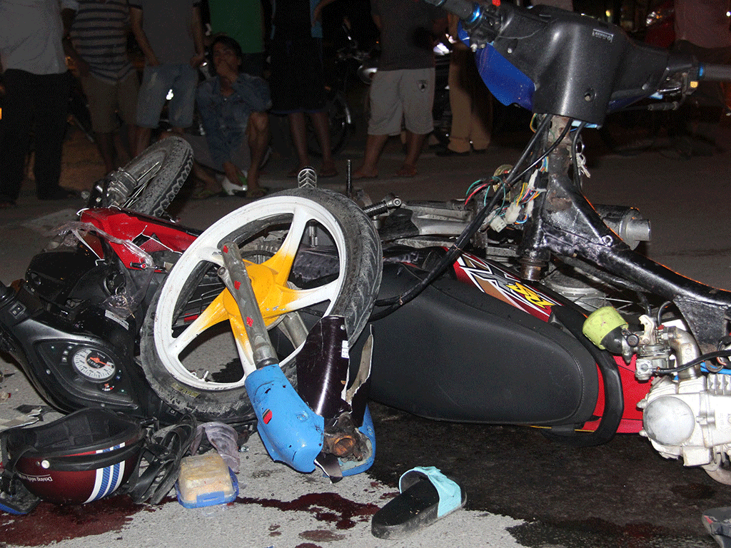 Bốn người trên hai xe bị thương được đưa đi cấp cứu chữa trị, riêng chị Oanh bị thương rất nặng được chuyển lên BV Chợ Rẫy để cấp cứu.
