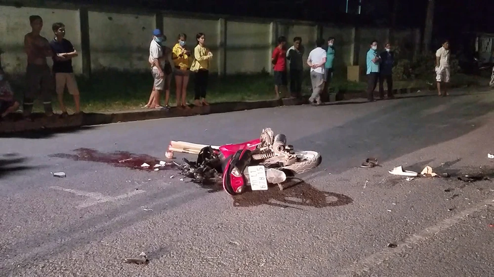 Tới nơi, người này phát hiện hai xe máy vừa tông vào nhau, nhiều mảnh vỡ văng tung tóe khắp nơi, bốn người nằm gần đó.