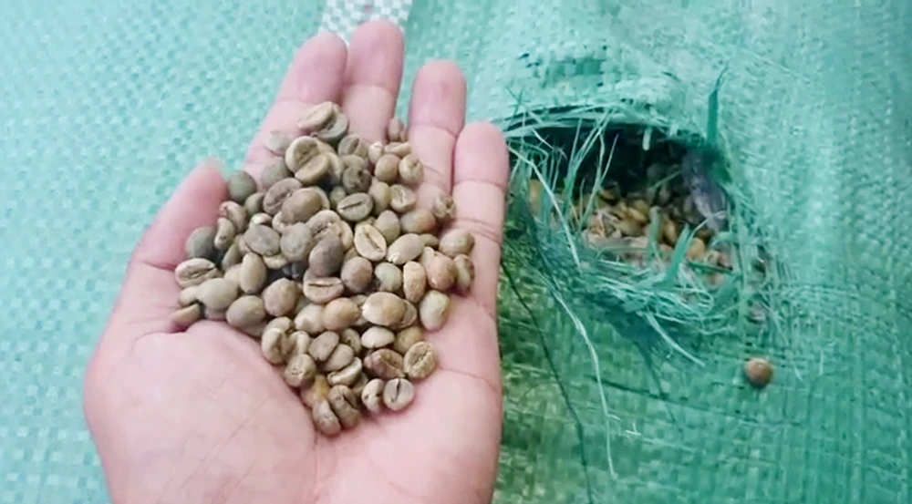 Trên xe, Tổ công tác phát hiện có 350 bao tải không nhãn mác, bên trong có chứa hạt cà phê với trọng lượng 21 tấn.