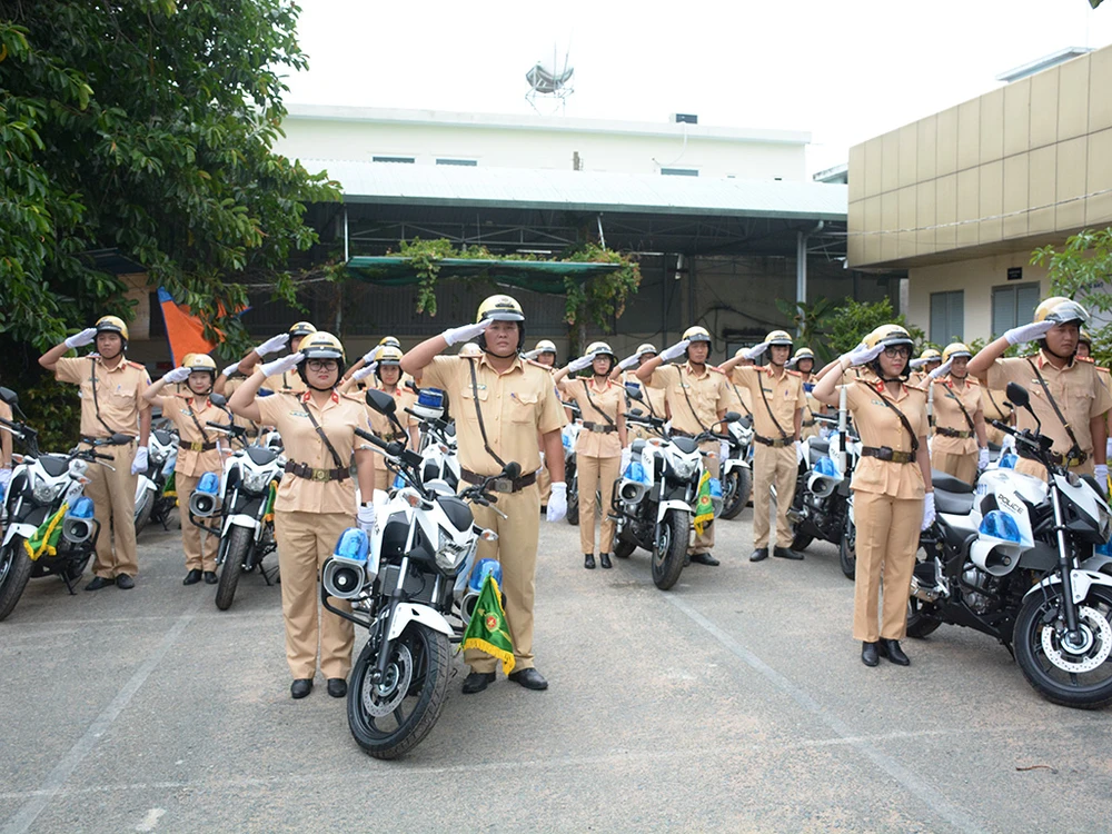 Với 20 nữ CSGT cùng 30 phương tiện. Ảnh H. Tâm.