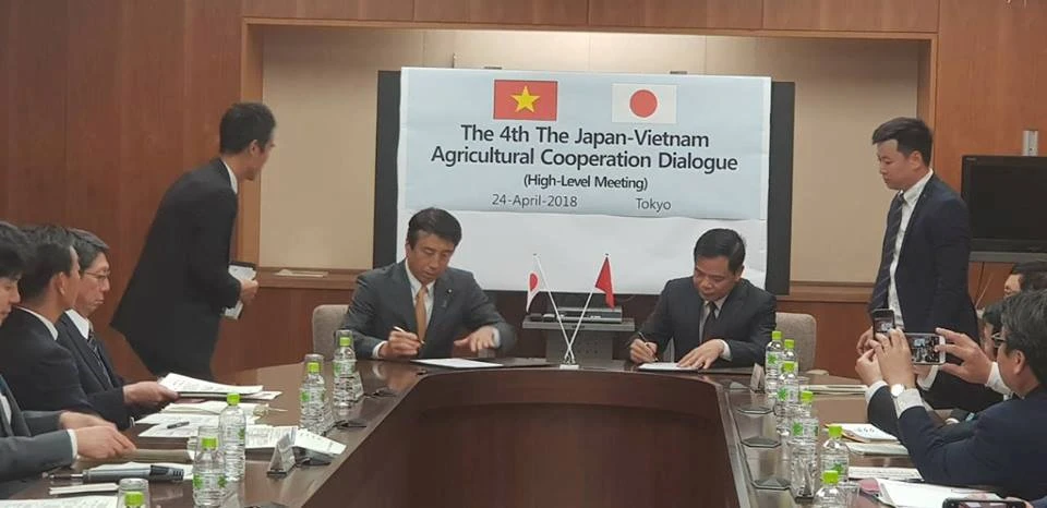 Lễ ký kết hợp tác giữa bộ trưởng Bộ Nông nghiệp Việt Nam (phải) và bộ trưởng Nông lâm ngư nghiệp Nhật Bản (trái).