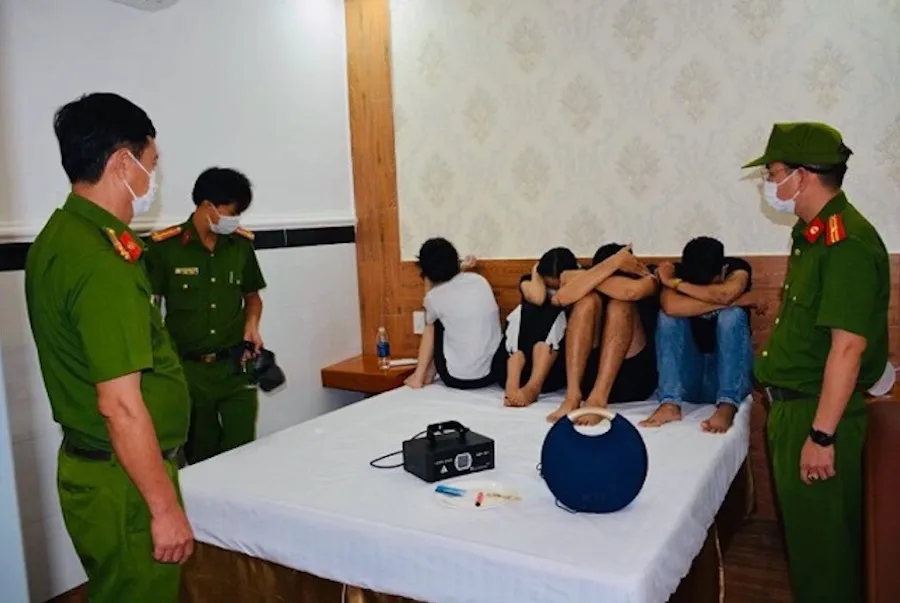 Tại đây, lực lượng công an phát hiện trong năm phòng ở tầng 4 của khách sạn có 20 người (12 nam, tám nữ) đang tụ tập sử dụng trái phép chất ma tuý.