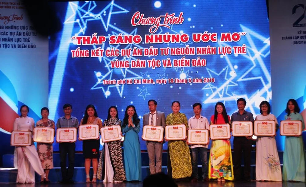 Chương trình đã trao Bằng khen của Trung ương Đoàn TNCS Hồ Chí Minh cho các cá nhân đóng góp tích cực công tác chăm sóc cho học sinh miền núi và hải đảo. Ảnh: HL