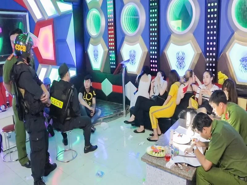 Hàng chục nam nữ dương tính ma túy trong quán karaoke Happy Garden.