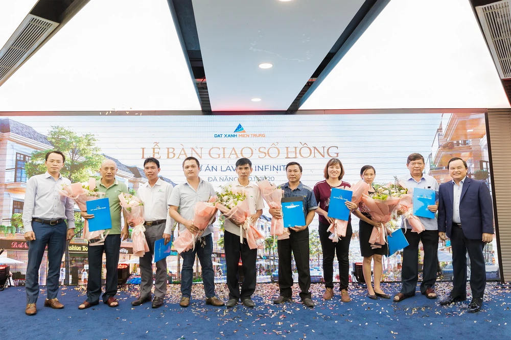 Lễ bàn giao có sự góp mặt của đại diện chủ đầu tư Công ty Sài Gòn - Đà Nẵng (SDN), nhà phát triển dự án Đất Xanh Miền Trung và các cư dân của dự án.