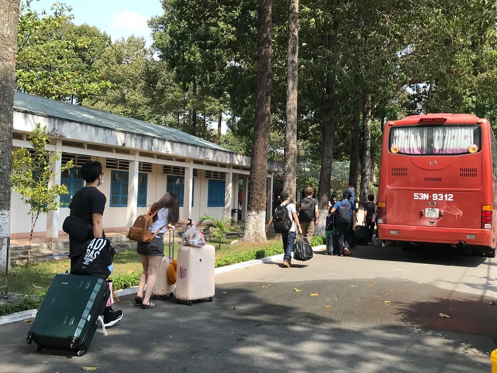Sáng 2-4, gần 200 người trong khu cách ly Trường Quân sự Quân khu 7 (quận 12, TP.HCM) đã hết thời gian cách ly và trở về với gia đình. Khu cách ly ở khu B sáng nay chộn rộn hơn hẳn vì xe đưa đón người về cứ ra vào liên tục.