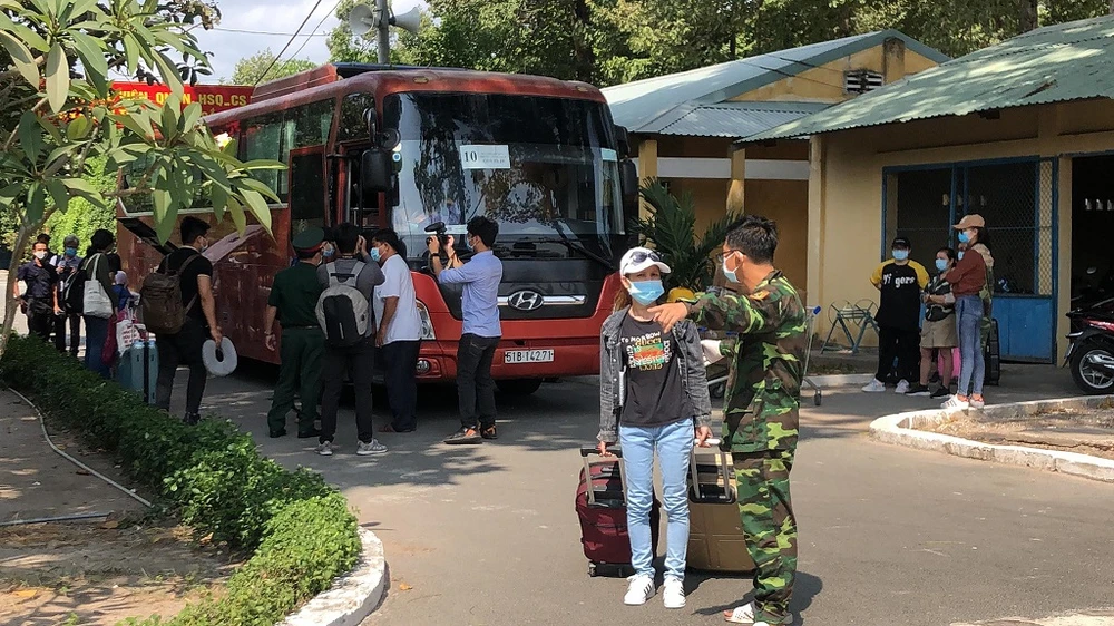 “Anh về đâu, ra sân bay hay Bến xe Miền Đông, hay đi chỗ nào khác?...”. Đó là câu hỏi mà các cán bộ, chiến sĩ liên tục hỏi để sắp xếp chỗ ổn định cho người vừa cách ly trở về.