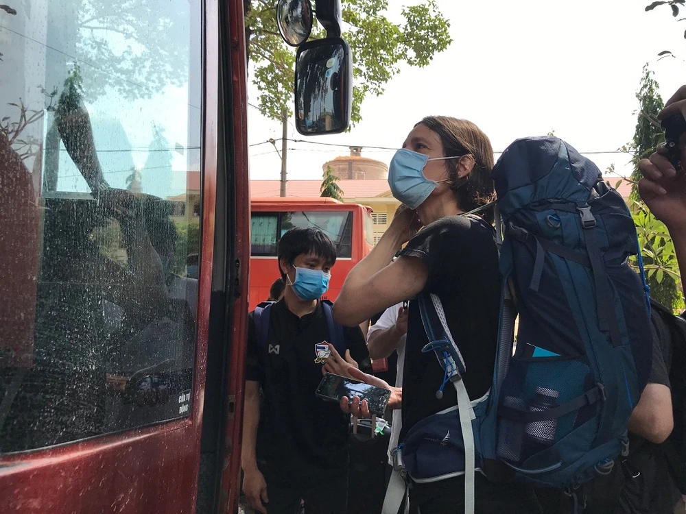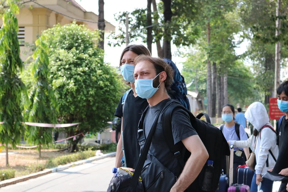 Khu cách ly ở Trường Quân sự Quân khu 7 có 50 người nước ngoài từ các nước như Ý, Hàn Quốc, Anh, Tây Ban Nha... Trong ảnh: Hai người nước ngoài được về trong sáng nay. Ảnh: THANH TUYỀN