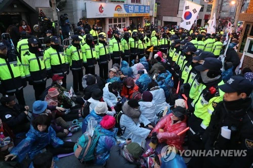 Những người ủng hộ bà Park tụ tập trước nhà riêng của bà vào sáng 30-3. Ảnh: YONHAP
