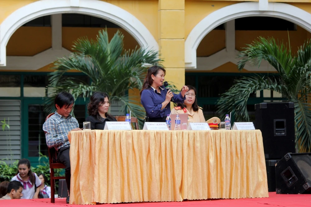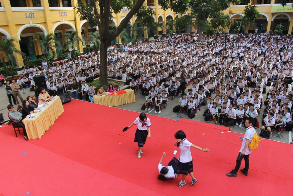 Ngoài việc cung cấp cho các em học những kiến thức về luật giao thông, luật hình sự qua phiên tòa giả định, nhà trường còn mời Đại úy Trần Thị Hồng Nhung, Phó Đội trưởng Đội Tuyên truyền, Điều tra, Giải quyết tai nạn và Xử lý vi phạm giao thông đường bộ - đường sắt Công an TP.HCM, ThS Lê Ngọc Nga, Phó Chánh án TAND quận 12, nhà báo Nguyễn Đức Hiển, Tổng Thư ký tòa soạn báo Pháp Luật TP.HCM và nhà báo Đặng Thị Hàn Ni, báo Sài Gòn Giải Phóng, đến tư vấn trực tiếp, giải đáp thắc mắc về ứng xử văn hóa nơi công cộng, giao tiếp với người xung quanh, các mối quan hệ với thầy cô, bạn bè… Từ đó nhắn gửi đến các em thông điệp thực hiện văn minh ứng xử, sống đẹp, sống tốt.