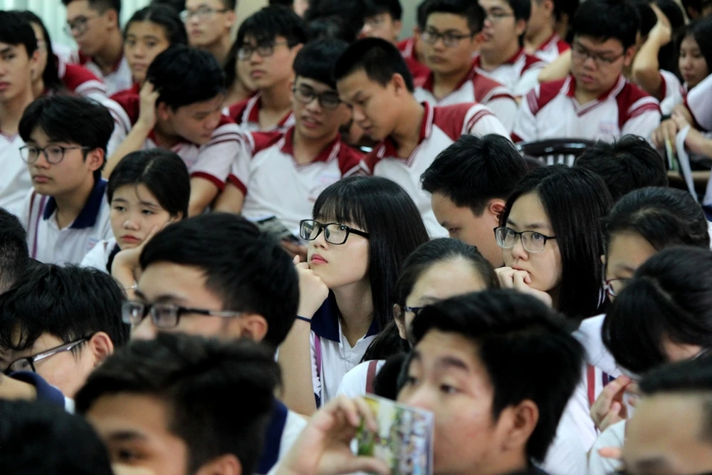 Ban cố vấn trực tiếp giải đáp những thắc mắc cho học sinh. Ảnh: HOÀNG GIANG