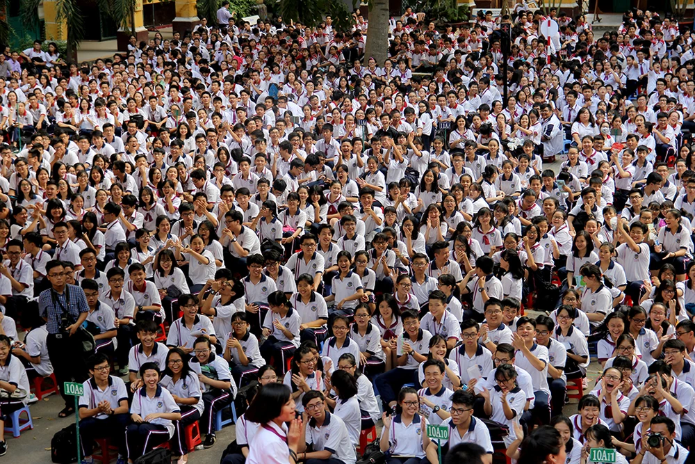 Gần 2.000 học sinh "đội nắng" tham gia chương trình. Ảnh: HOÀNG GIANG