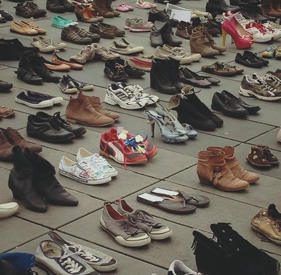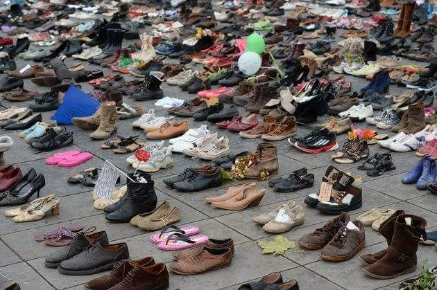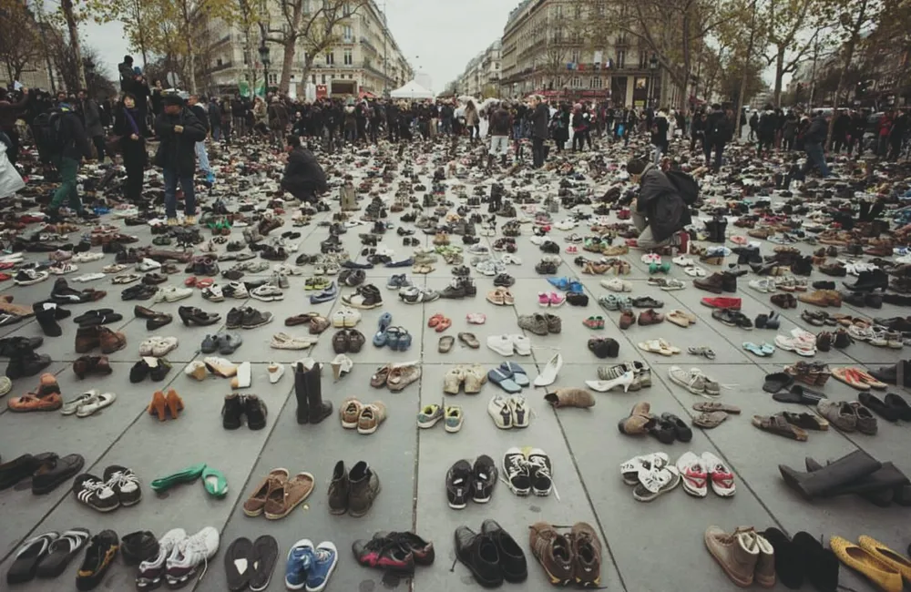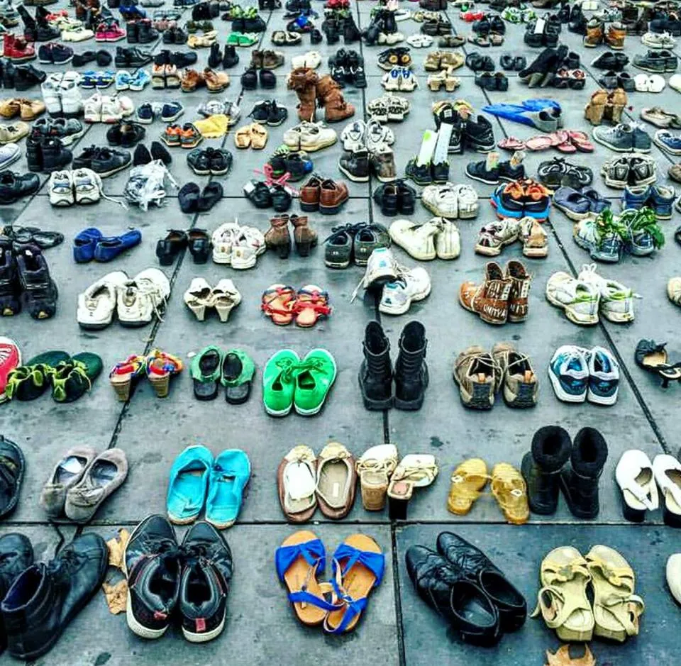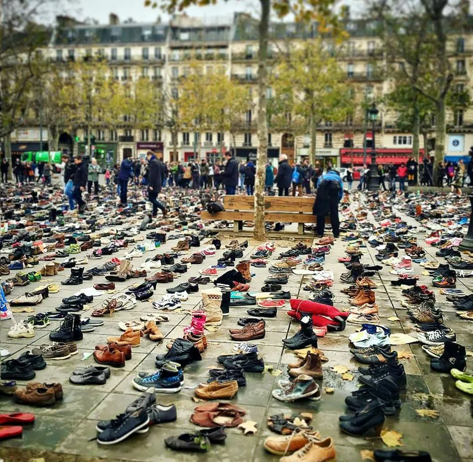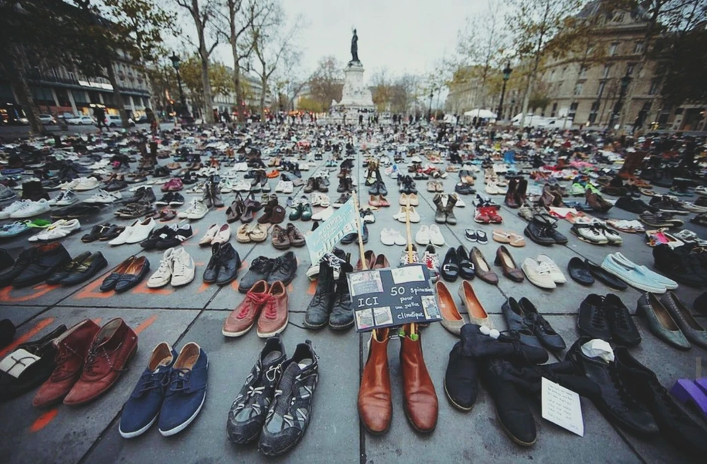 Một tác phẩm nghệ thuật sắp đặt đường phố được trưng bày với hơn 20.000 đôi giày tượng trưng cho 20.000 người biểu tình bày tỏ chính kiến về biến đổi khí hậu