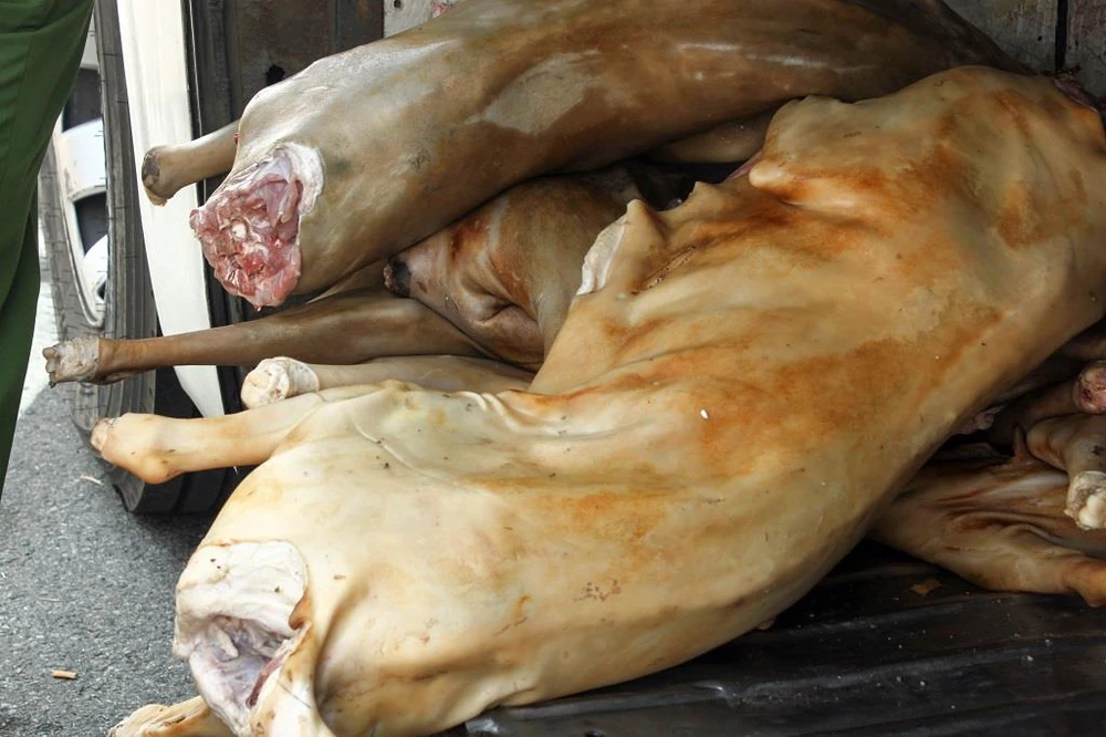 Qua kiểm tra, lực lượng phát hiện trên xe có 12 con dê làm sẵn nguyên con (khoảng 221 kg) đựng trong bao tải không đả bảo an toàn vệ sinh.