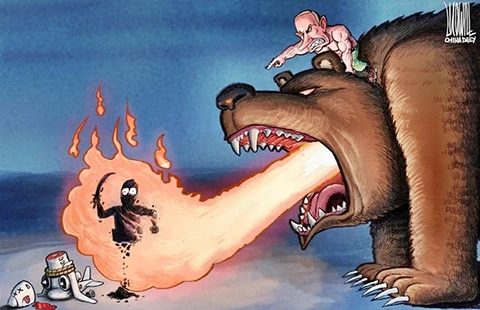 Nga mở chiến dịch đánh IS ở Syria. Biếm họa của báo China Daily (Trung Quốc)