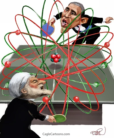 Thỏa thuận lịch sử về chương trình hạt nhân Iran. Biếm họa của RIBER HANSSON (báo Sydsvenskan của Thụy Điển)