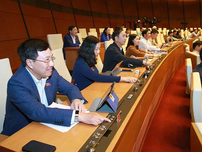 Đại biểu Quốc hội biểu quyết thông qua các dự án luật và nghị quyết chiều 26-11. Ảnh: TTXVN