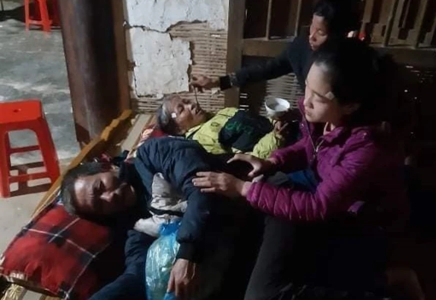 Người dân trong vùng vừa chống mưa lũ vừa thay nhau đến nhà chăm sóc, động viên vợ chồng ông Sơn, bà Vân.