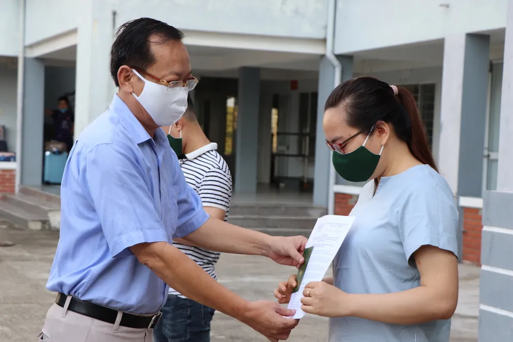 MỘt trong những người được nhận quyết định hoàn thành cách ly. Ảnh: TN