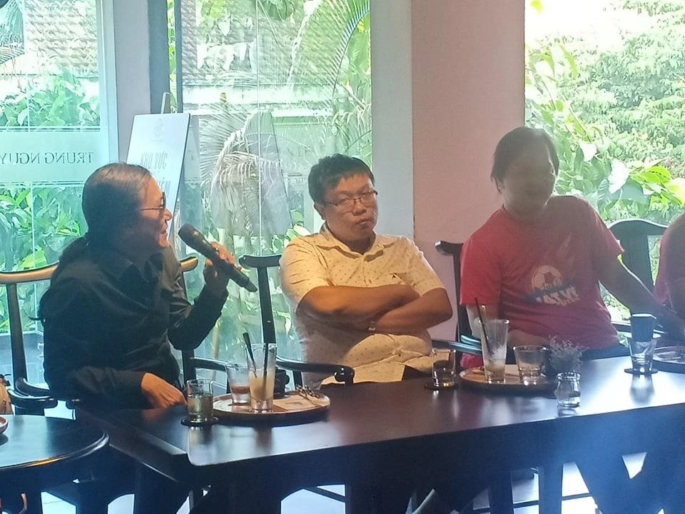 Nhạc sĩ Nguyễn Minh Châu (bìa trái) nêu ý kiến.