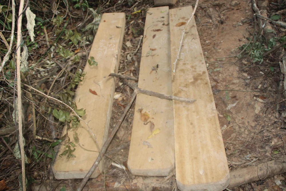 Các cây gỗ dổi bị xẻ thành tấm. Ảnh: CTV