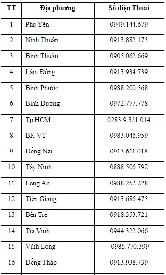 Theo đó, các tổ chức, các nhân tại 23 tỉnh, thành phố khu vực phía Nam khi phát hiện các hành vi vi phạm pháp luật về giá, các hành vi lợi dụng dịch bệnh để thu lời bất chính có thể gọi ngay đến các đầu số điện thoại sau để tố giác: