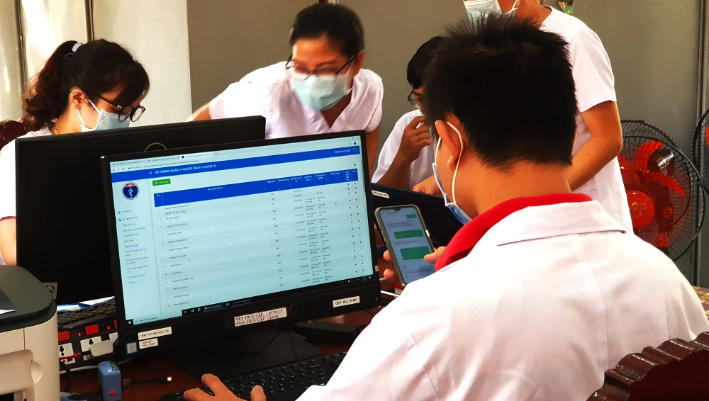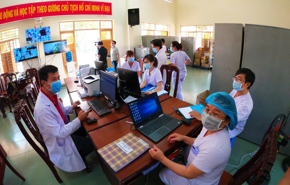 Chiều 29-3, tại Bệnh viện dã chiến Củ Chi, nhiều y bác sĩ tập trung làm việc, hôm đó bốn người được công bố khỏi bệnh, nhận giấy xuất viện trở về. Ảnh: NT