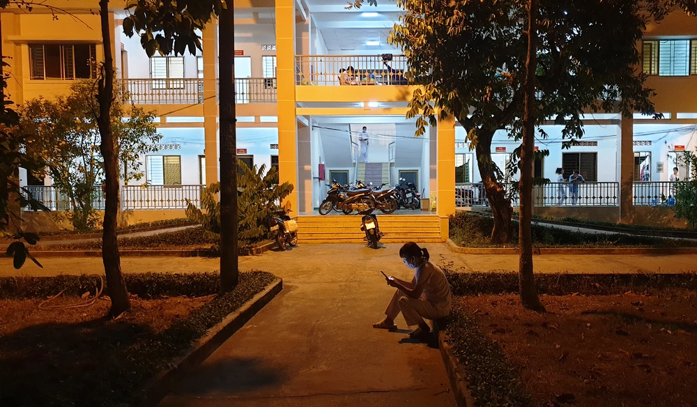 Một nữ cán bộ công tác tại Bệnh viện Củ Chi cho biết mình đã không về nhà một tháng nay. Hằng ngày, mỗi khi đến giờ nghỉ ngơi, chị điện về nhà hỏi thăm con còn nhỏ và chồng. Chị cho biết nhiều người đang làm việc ở Bệnh viện dã chiến cũng như vậy. Ảnh NT