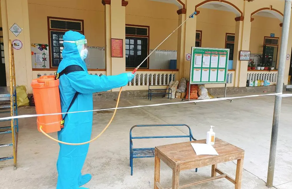 Lực lượng y tế phun khử khuẩn tại khu vực cách ly.