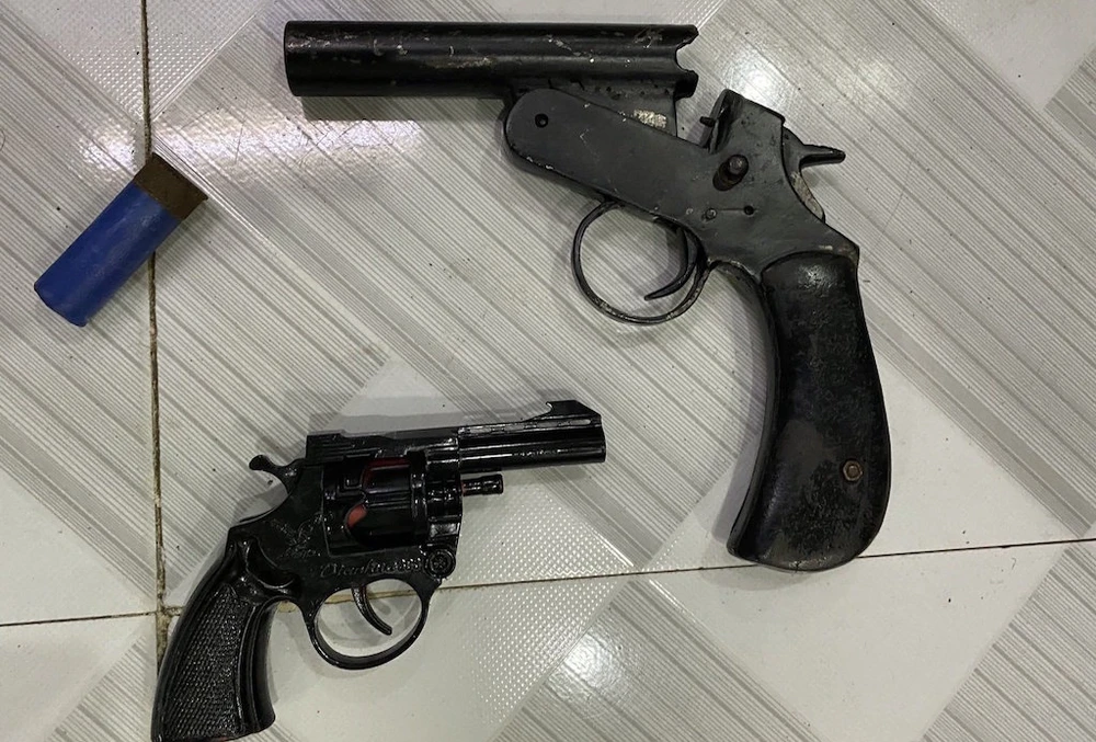 Súng bắn đạn hoa cải, súng bằng nhựa công an thu được từ 25 người sử dụng ma túy trong quán Karaoke. Ảnh: công an cung cấp