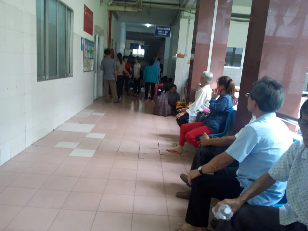Người nhà ngồi chờ trước phòng cấp cứu Bệnh viện Đa khoa Trung ương.