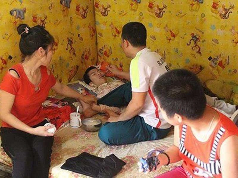 Đây là trường hợp báo Pháp Luật TP. HCM đề cập trong bài viết “Nước mắt vợ chồng nghèo nuôi hai con teo não”. Vợ chồng anh Nguyễn Quang Hưng (38 tuổi) và chị Lê Thị Vũ (37 tuổi) ở thôn Nhật Nội (Thọ Dân, Triệu Sơn) suốt 10 năm qua vất vả chăm sóc những đứa con mình bị bệnh tật hành hạ.