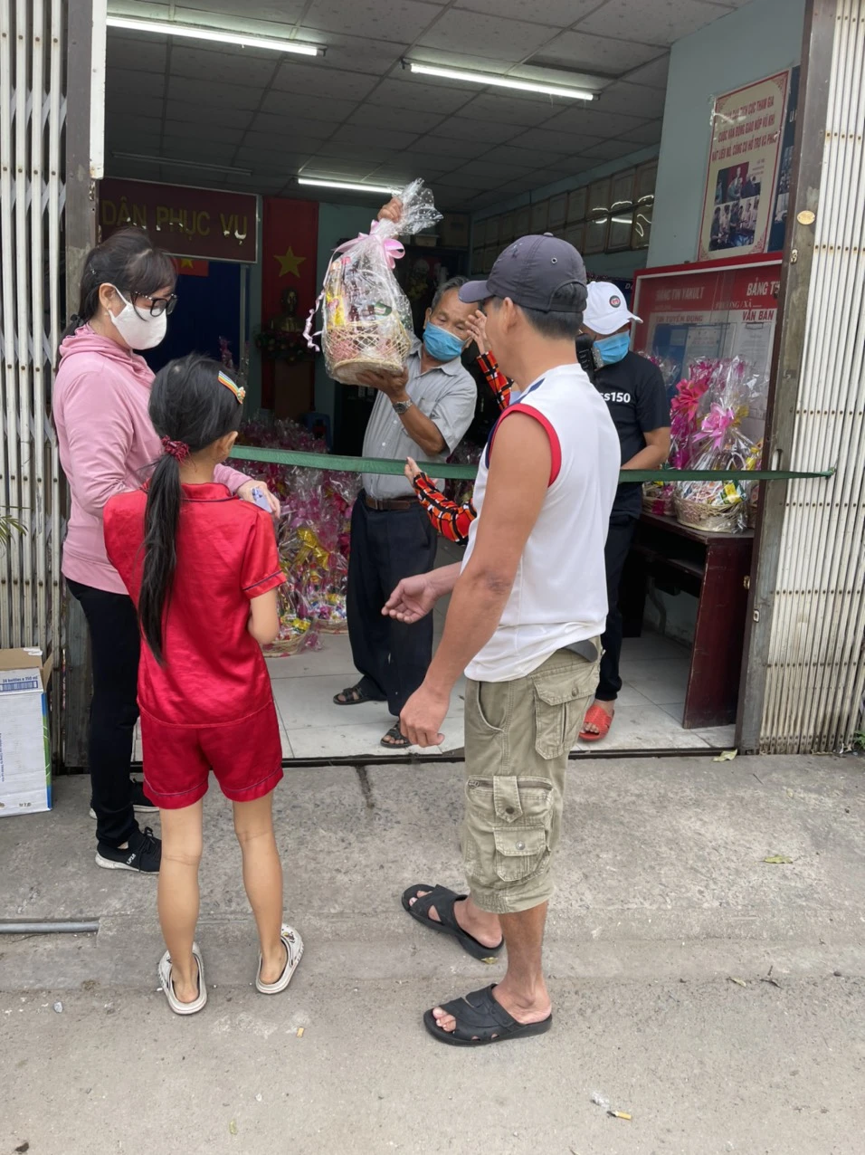 Số quà do các mạnh thường quân khu phố 9 gồm Sư Duyên Anh, điện máy Nguyễn Thông, điện máy Hoàng Lam, nhà nghỉ Hữu Tân, bida Bảy Chánh và chị Liên phế liệu ủng hộ.