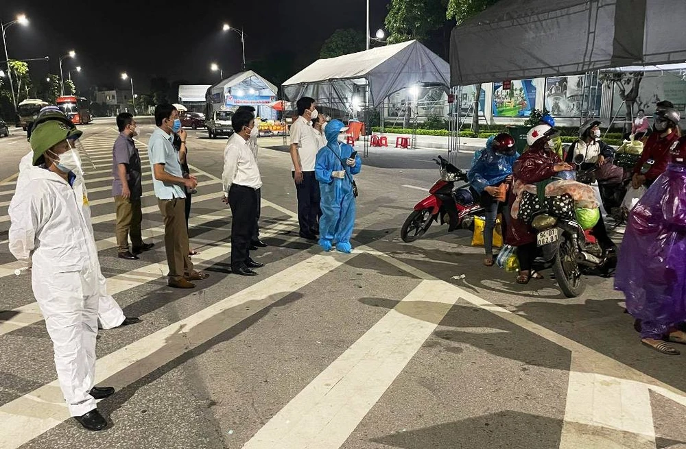 Bí Thư huyện ủy Con Cuông và cán bộ huyện Con Cuông xuống TP Vinh đón, động viên 28 người từ Bình Dương về quê.