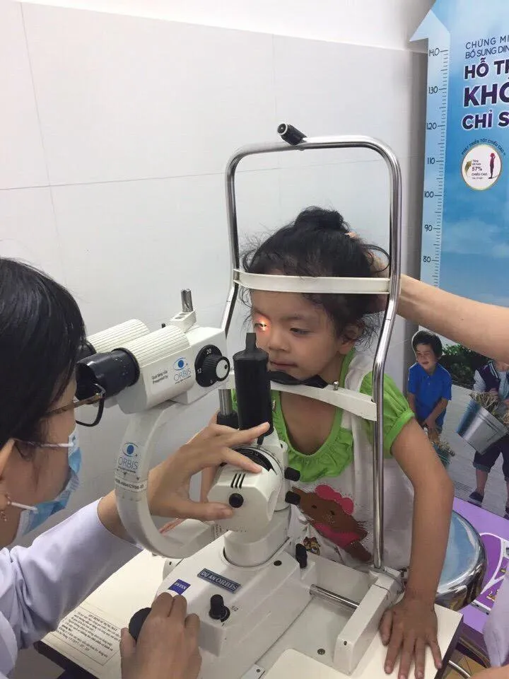 Một bệnh nhi được khám và phẫu thuật miễn phí tại BV Mắt TP.HCM. Ảnh: HBT