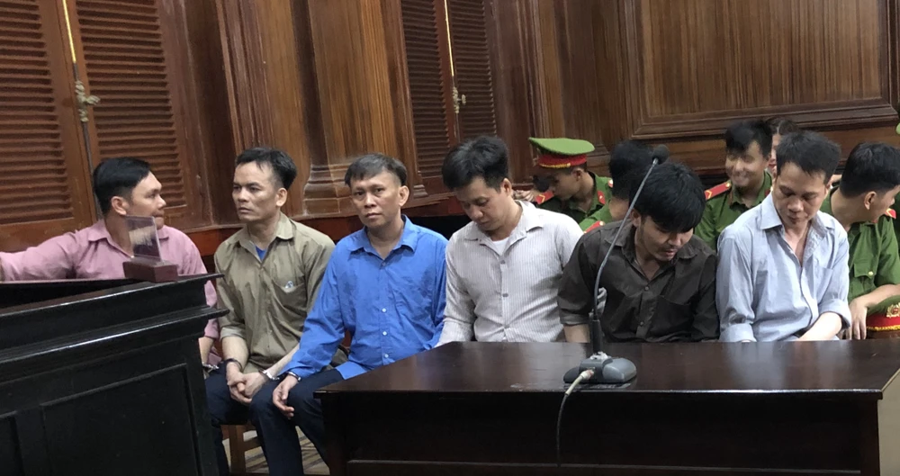 Các bị cáo khi tòa nghị án. Ảnh: H.Y