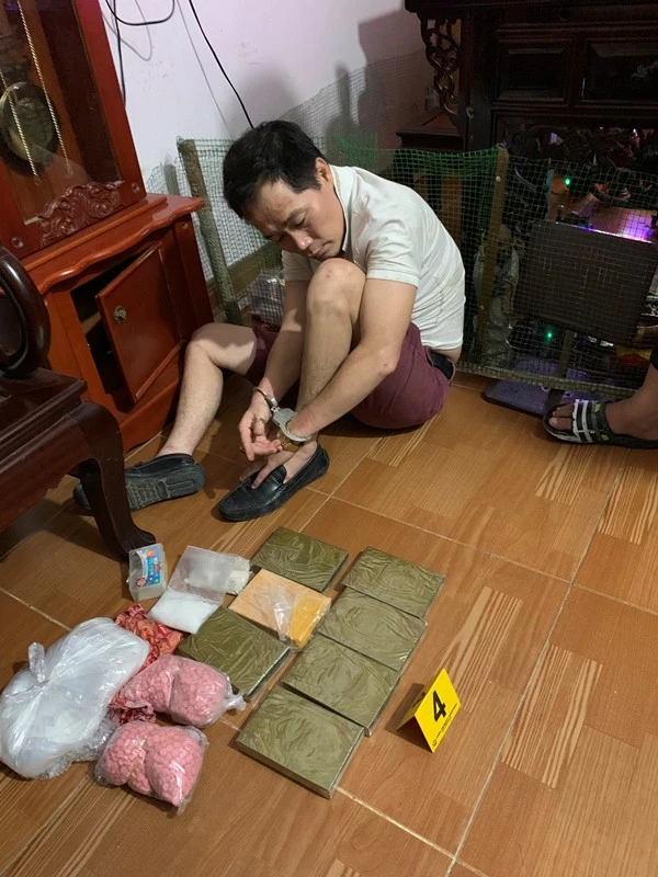 Tiến hành khám xét thêm, trinh sát thu giữ vật chứng gồm 13 bánh heroin, 1.990 viên thuốc lắc, ba gói ma túy đá, hai súng dài tự chế, ba ô tô, năm mô tô và nhiều tang vật khác.