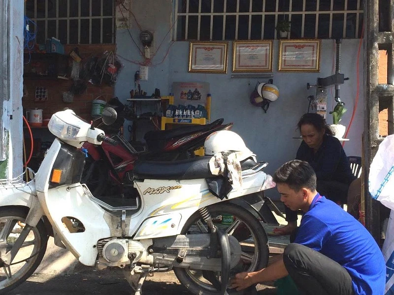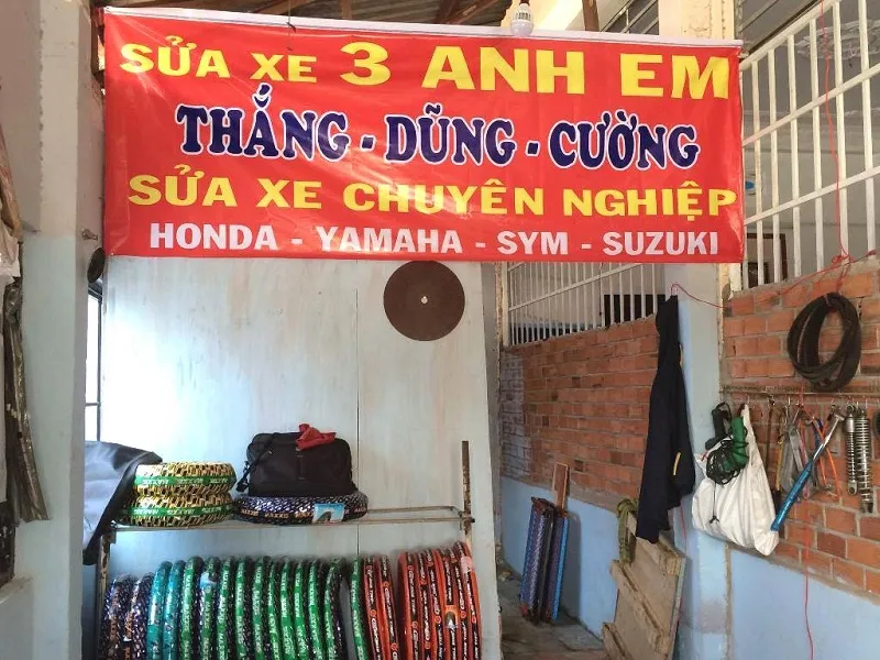 Tiệm sửa xe này nằm trên đường Tân Sơn, phường 12, quận Gò Vấp, TP.HCM. Mở tiệm sửa xe cũng là ước mơ ấp ủ từ rất lâu của cả ba anh em. Mặt bằng để mở tiệm được ba anh em thuê với giá 6 triệu đồng/tháng.