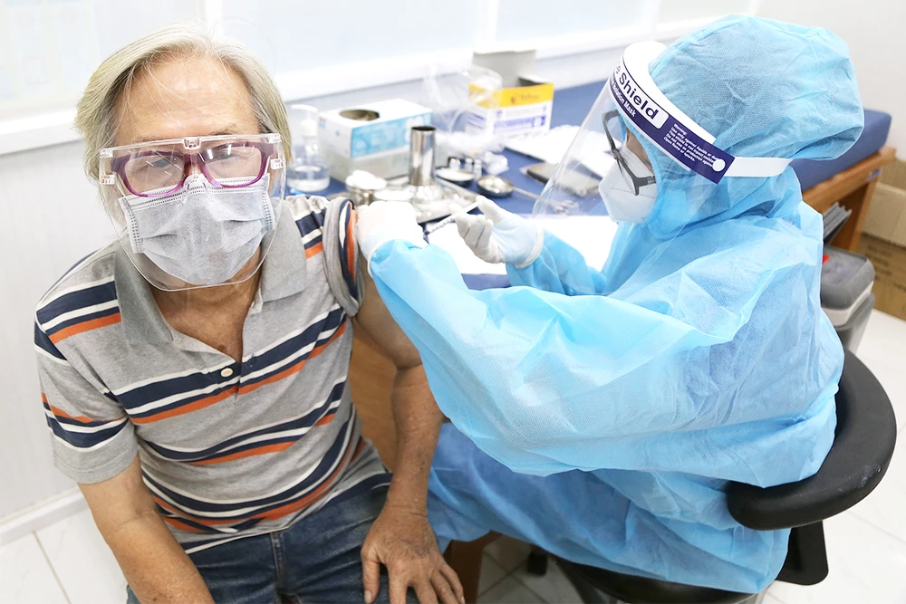 Tiêm vaccine phòng COVID-19 cho người trên 65 tuổi tại TP.HCM. Ảnh: HOÀNG GIANG