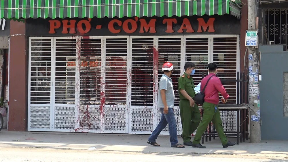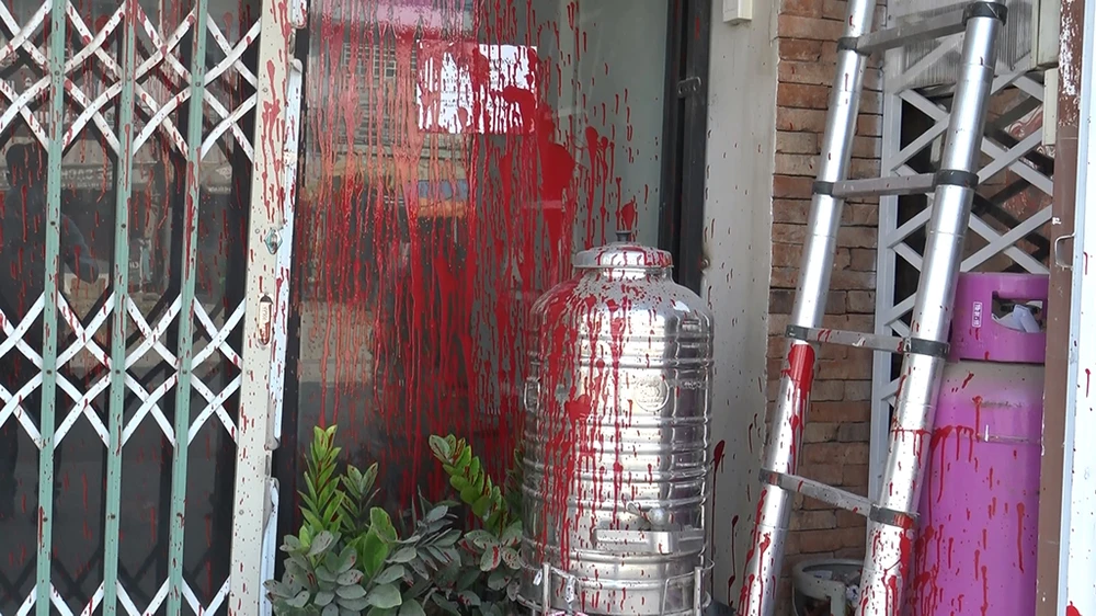 Theo đó, sáng cùng ngày, nhiều người gần đó nghe tiếng động mạnh và mùi sơn nồng nặc nên chạy ra. Họ phát hiện cả ba căn nhà liền kề nhau bị tạt sơn. Chất bẩn màu trắng, đỏ loang lổ vương vãi khắp nơi trên tường, xe máy, cổng sắt…