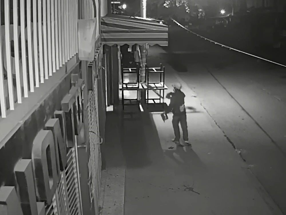 Theo hình ảnh từ camera an ninh, có hai người đàn ông tới tạt sơn. Hai người này làm rất nhanh rồi rời đi.